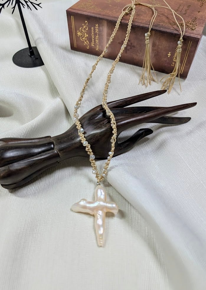 淡水バロックパールコードネックレス クロス