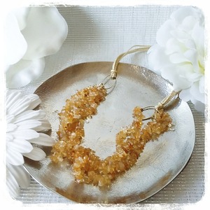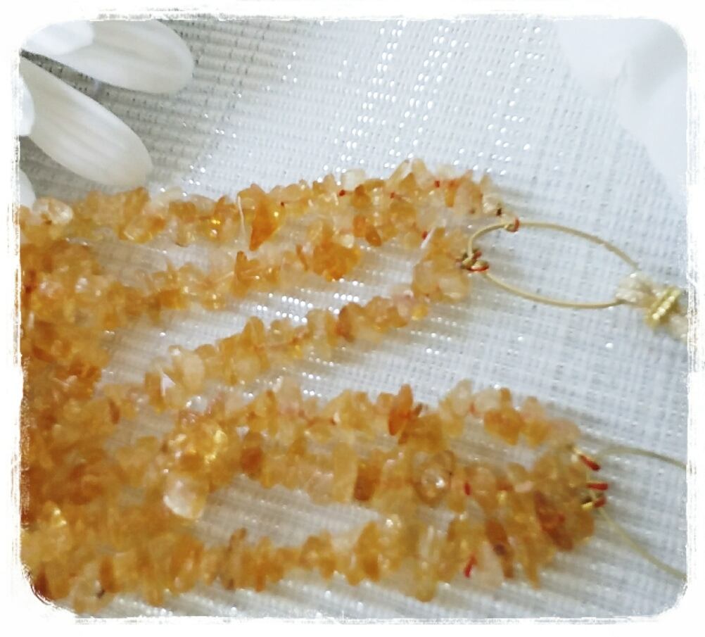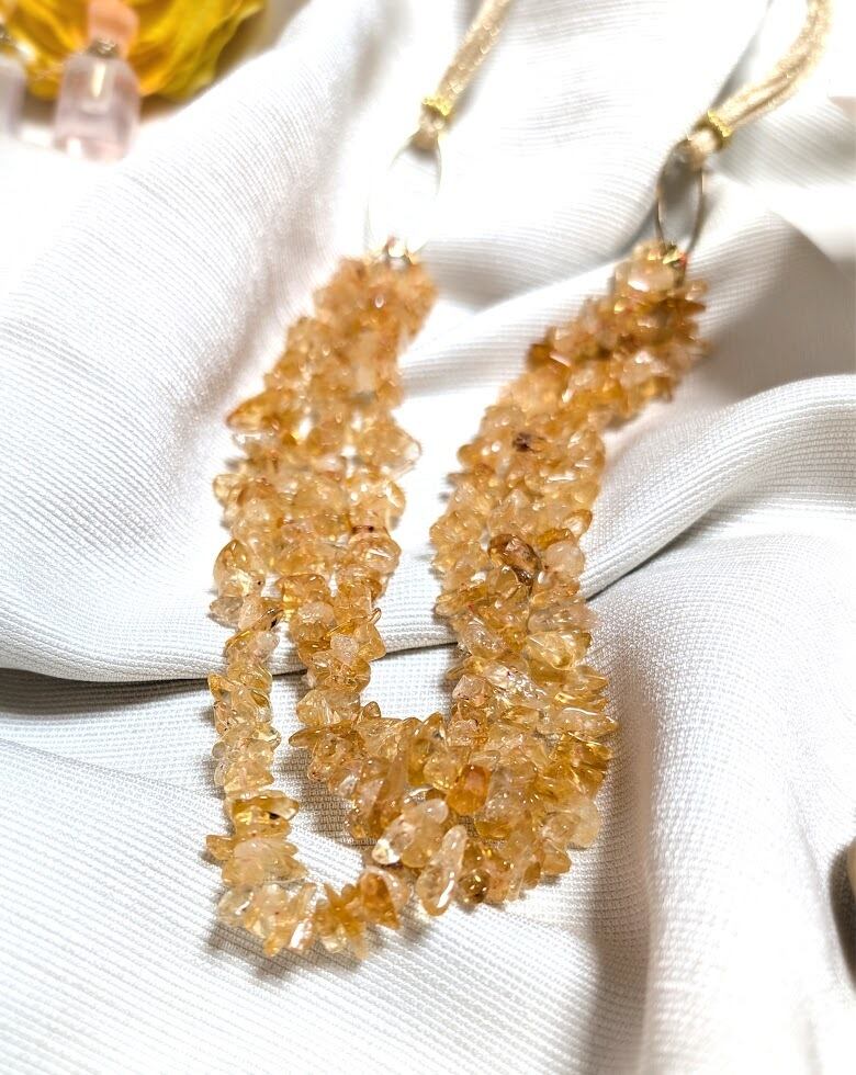 シトリンチップの三連ネックレス
