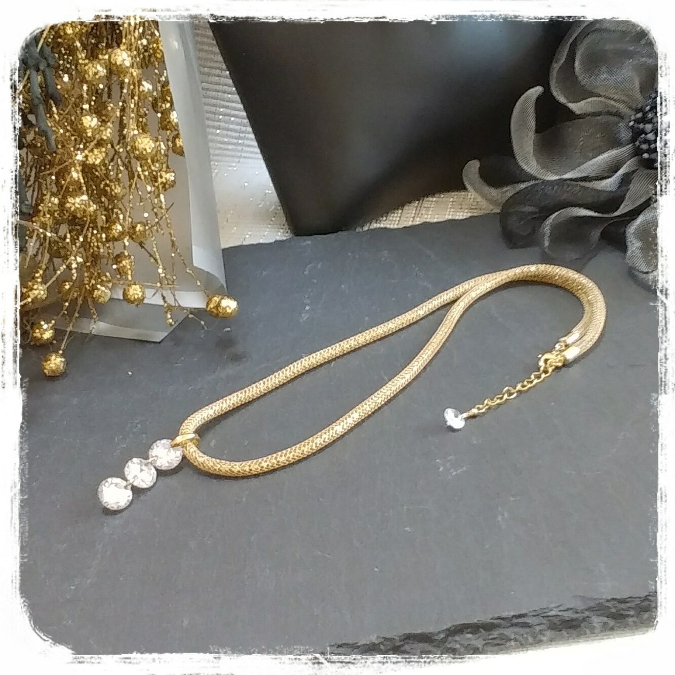 人工石だからこそできるホール(穴)と太めのチェーンで装ってみませんか