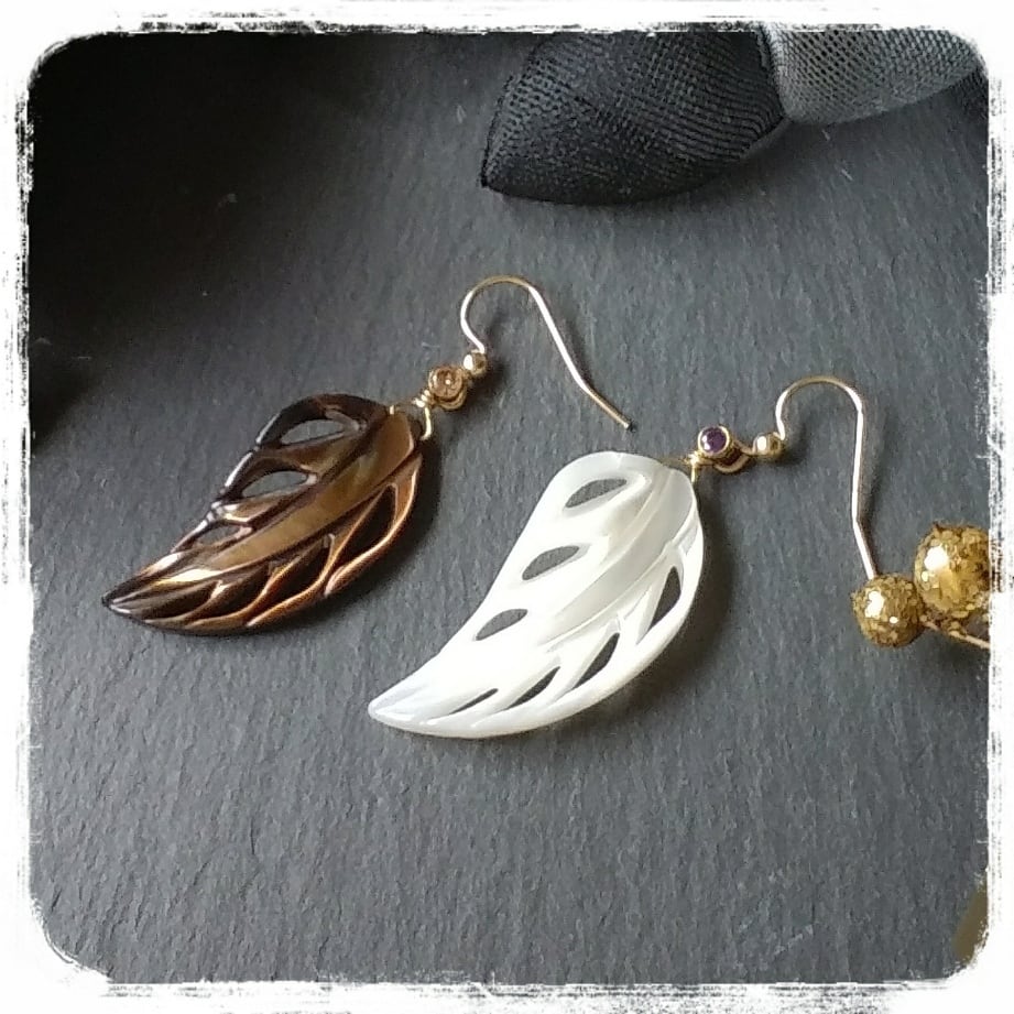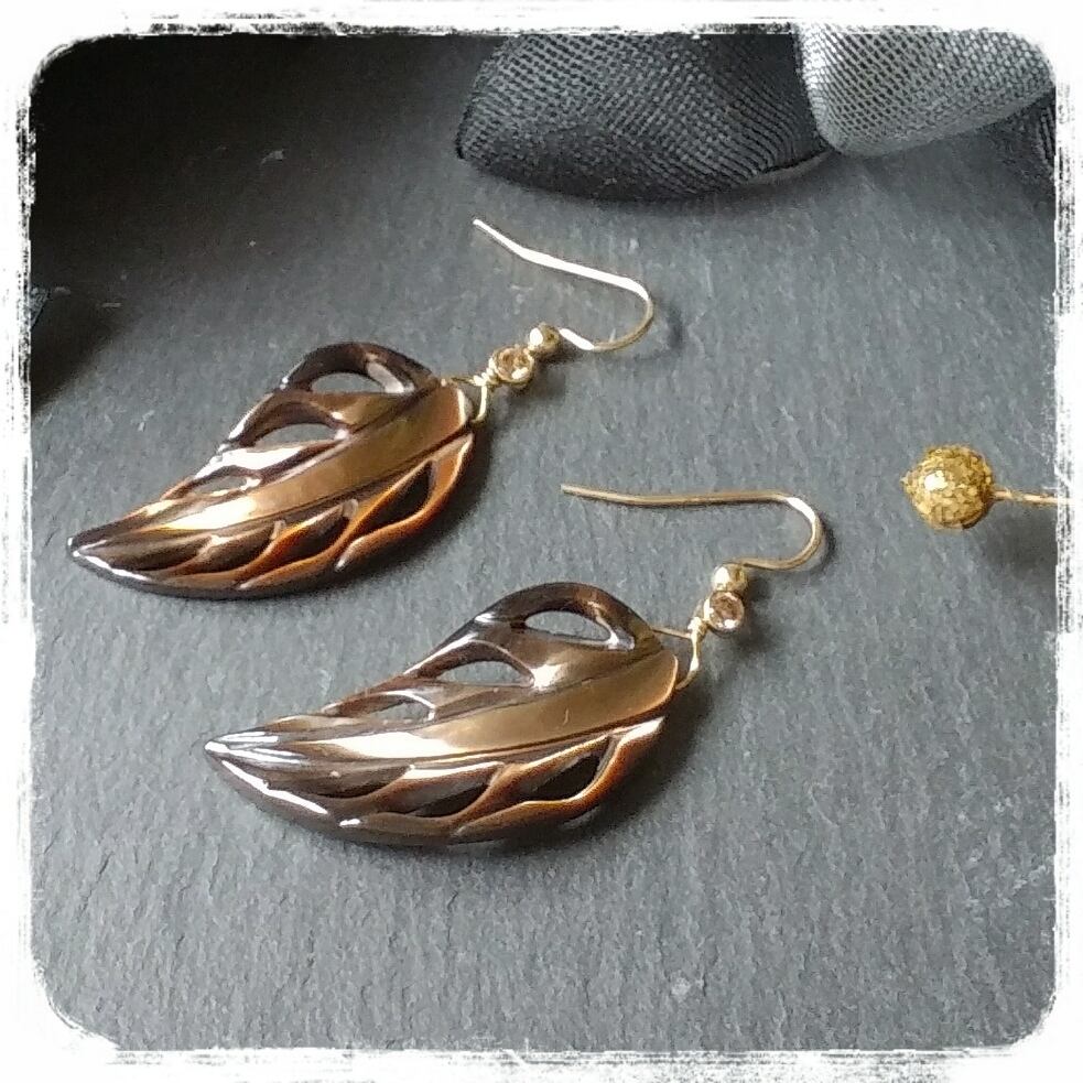 シェルリーフ14kgfピアス(ブロンズ/ホワイト)