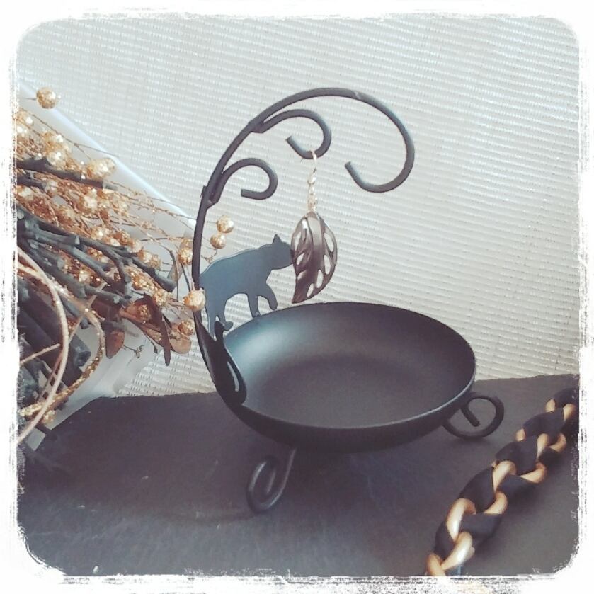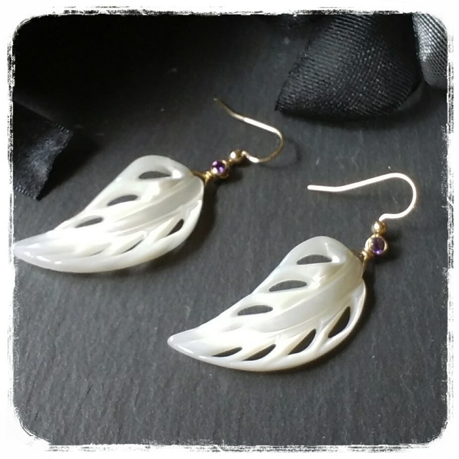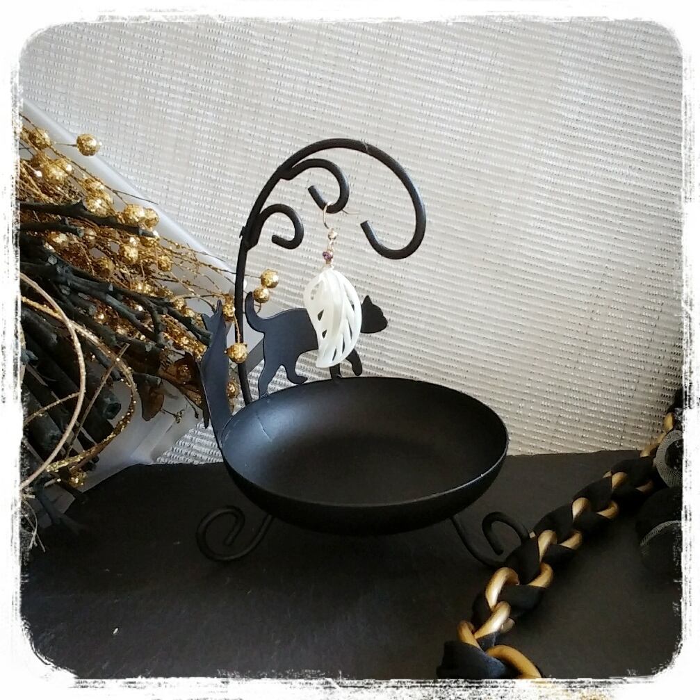 透かし模様の葉っぱが耳元で揺れるピアス。