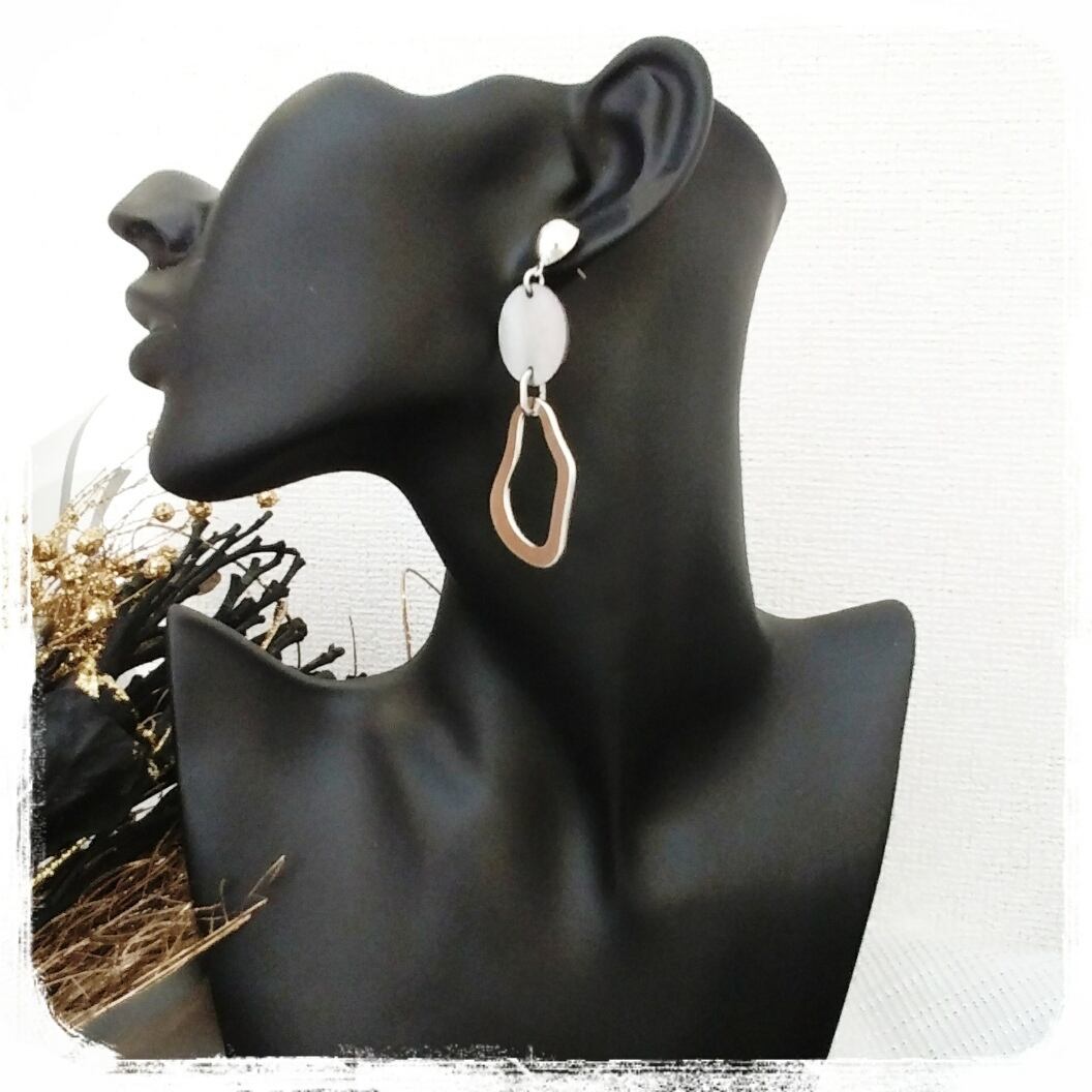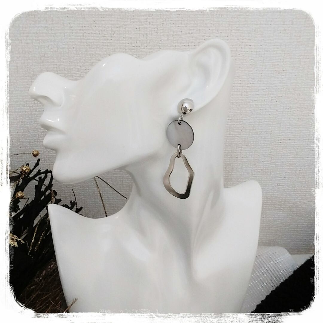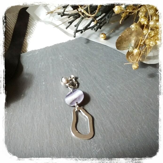 シルバーパーツとブラックシェルでクールな耳元を演出してくれそうなピアス。