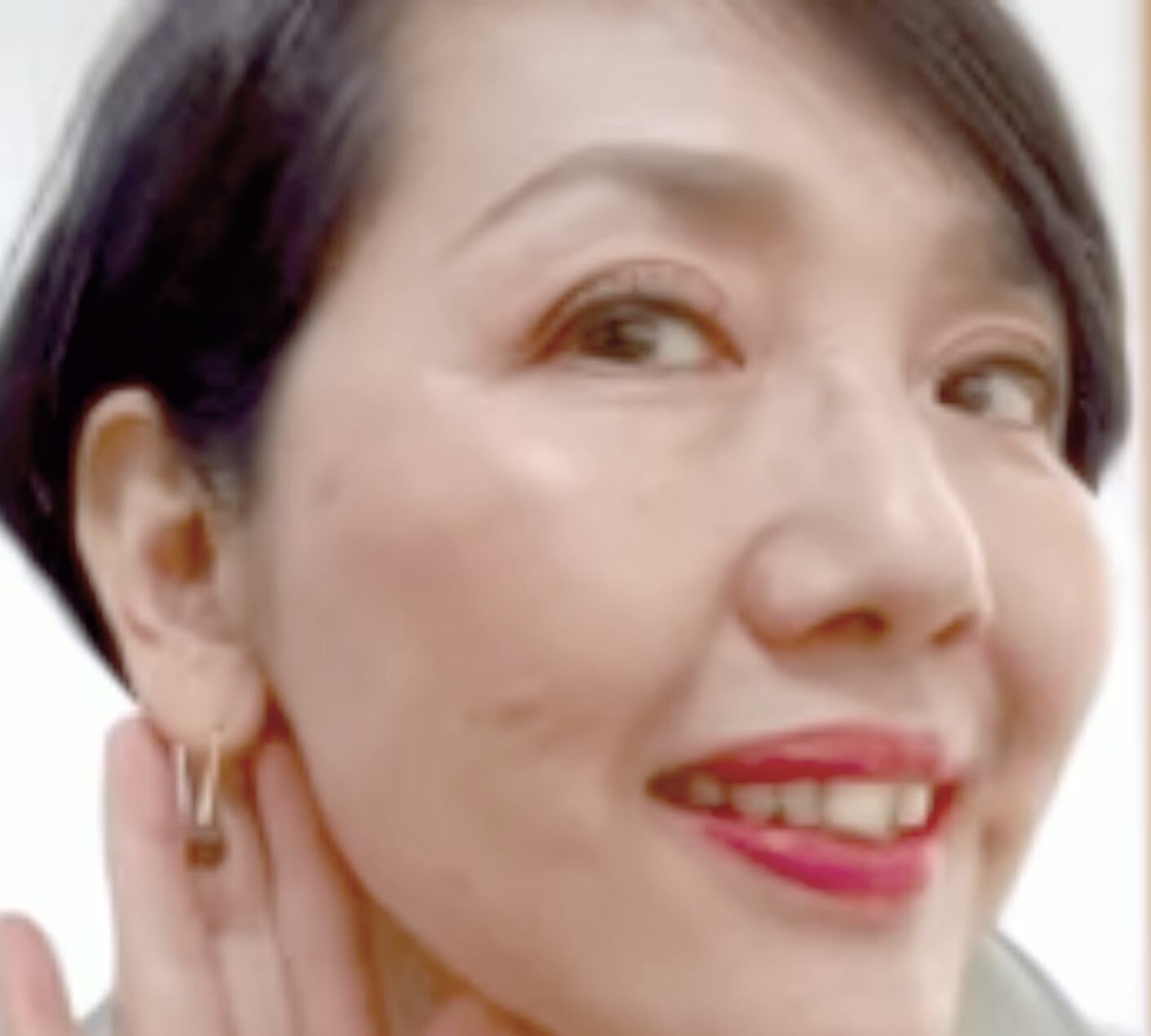 大人女子のピアスとでも言い表すかのようなスモーキークォーツの耳元。