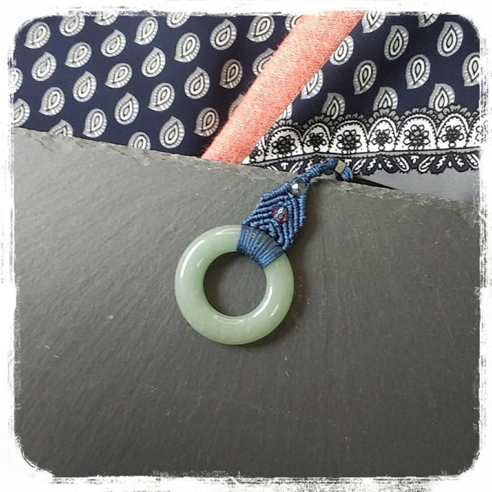 翡翠のようなお色にネイビーのコードで編んだ根付です。