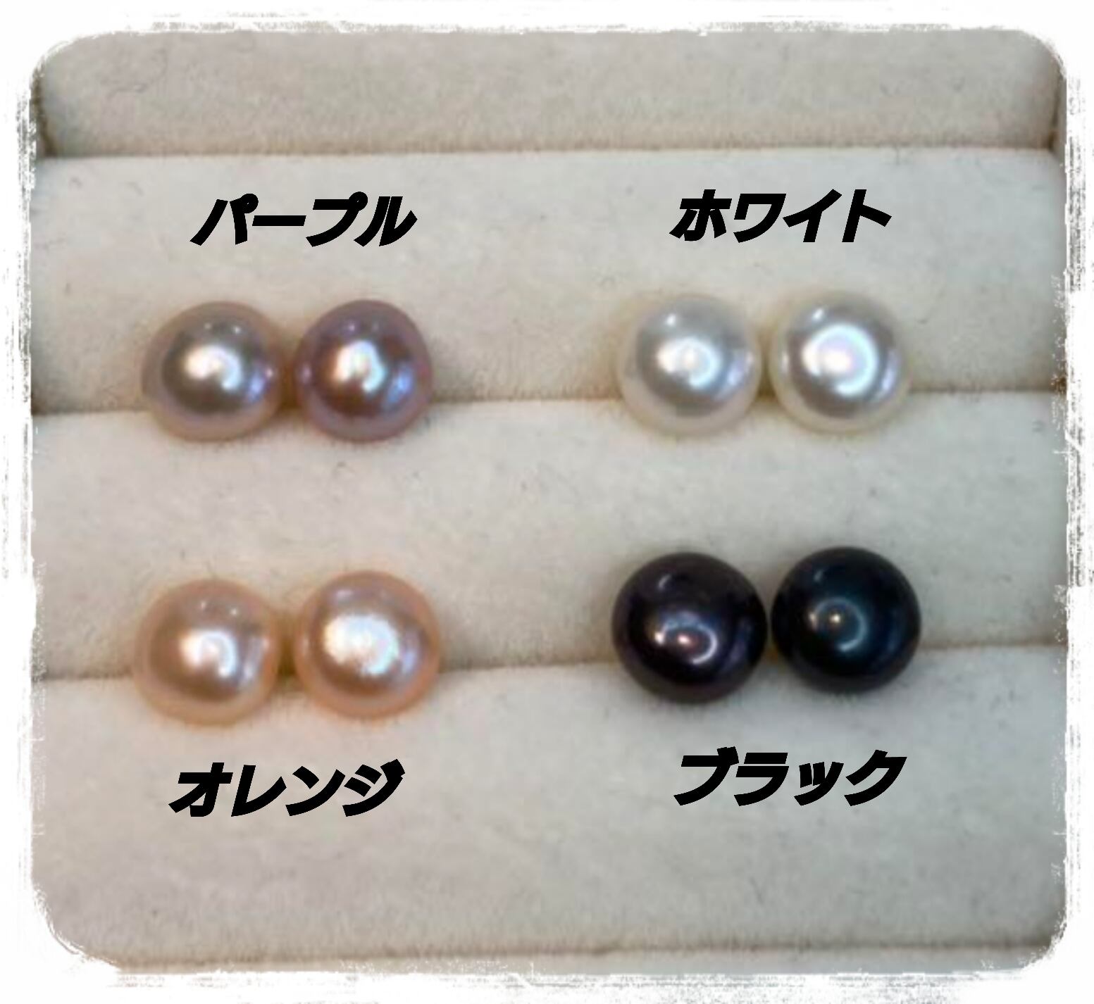 ポチッと小粒の淡水パールのピアス、4色の可愛い子たちです。