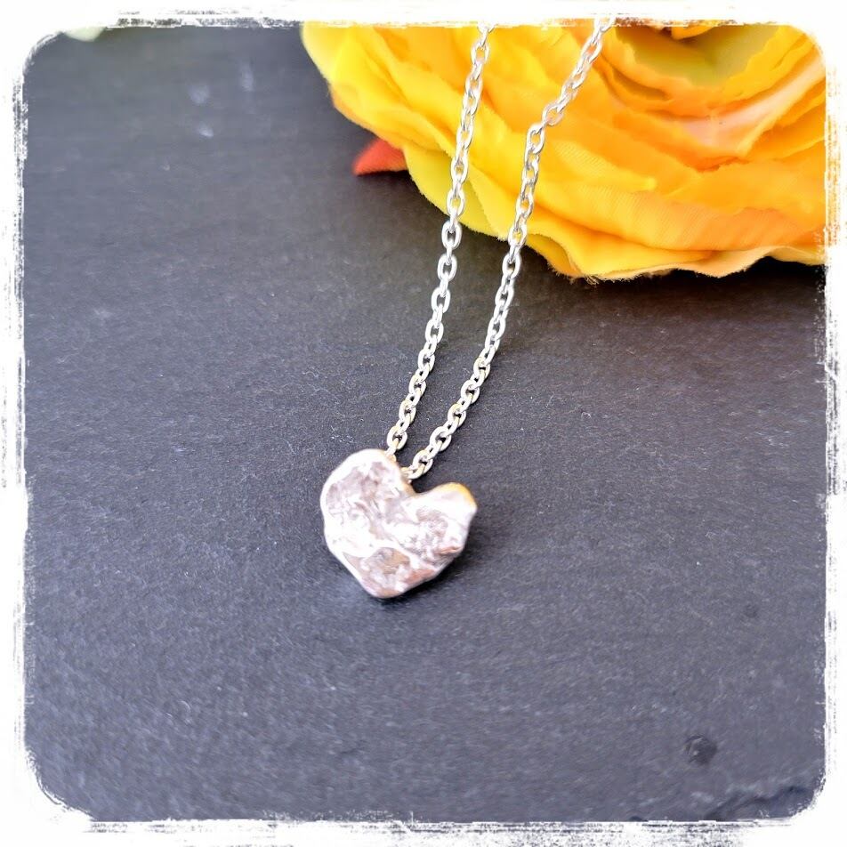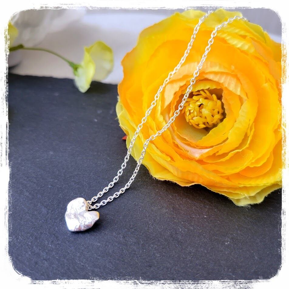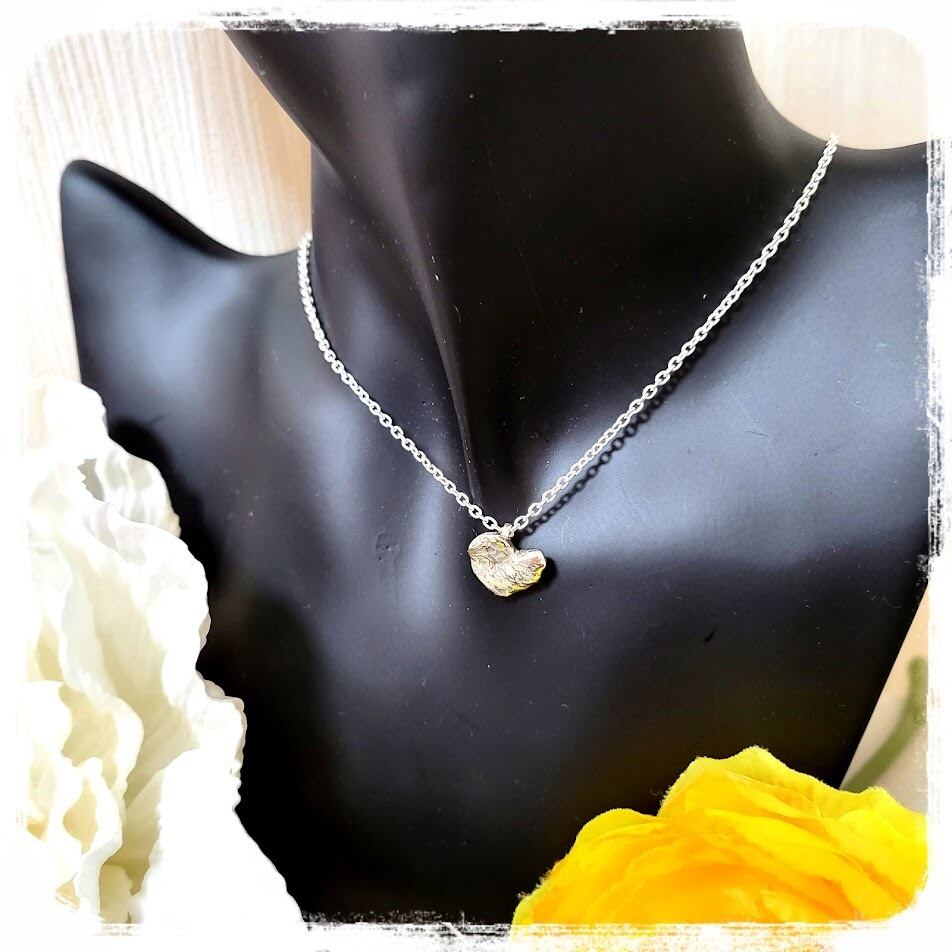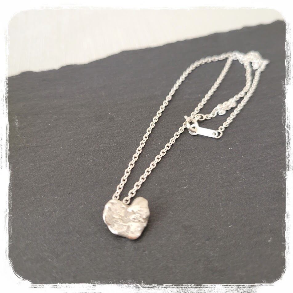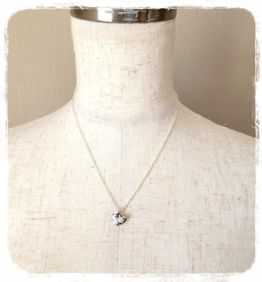 ざっくりとしたタッチの表面がハートでも甘くならす、重量感のあるペンダントです。
