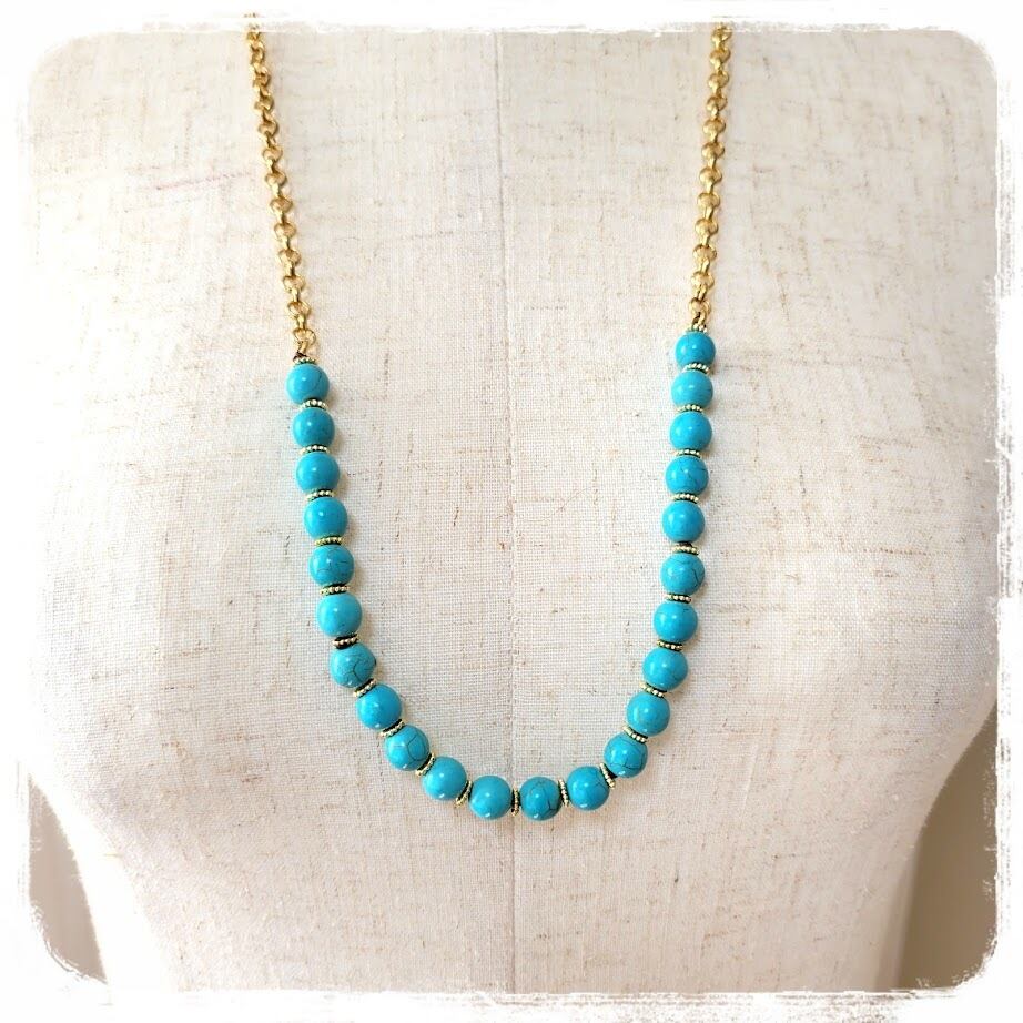 練ターコイズマンテル留 ロングネックレス