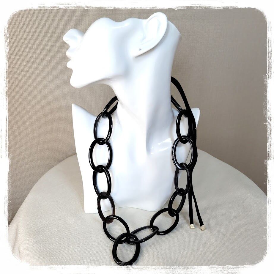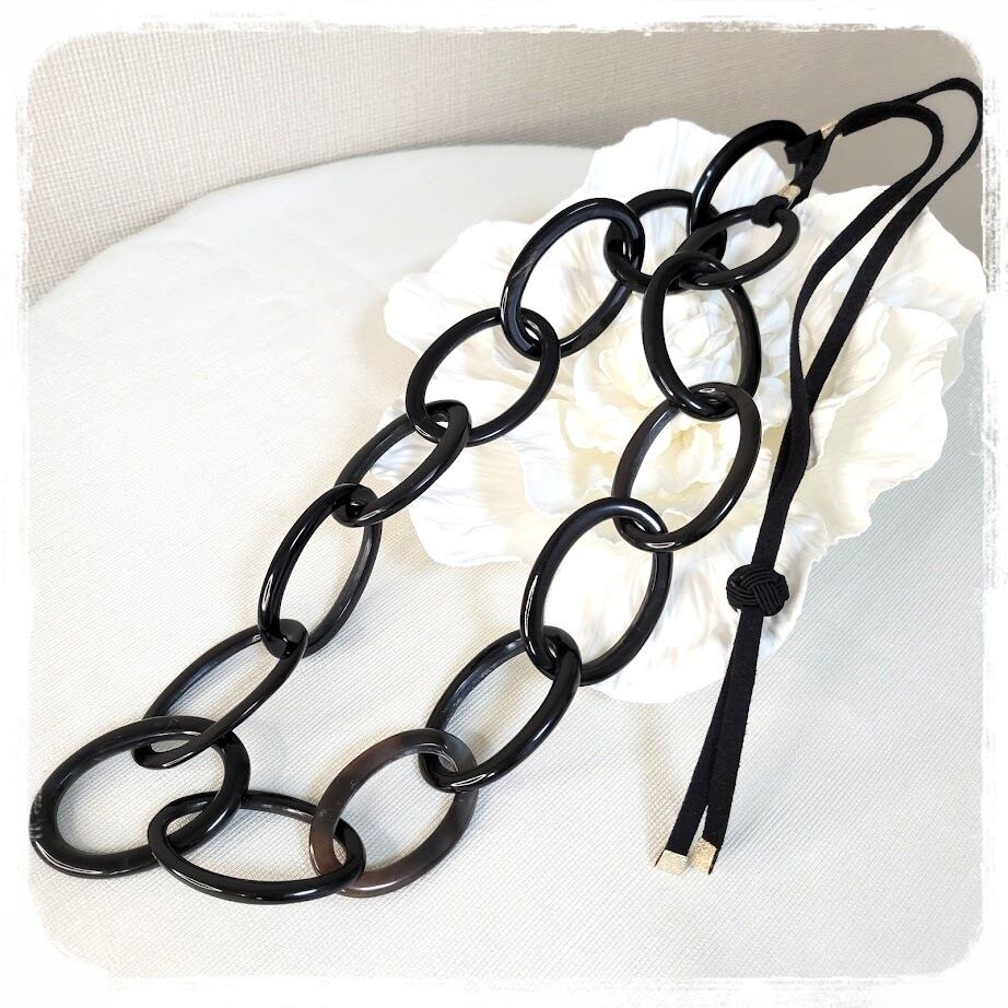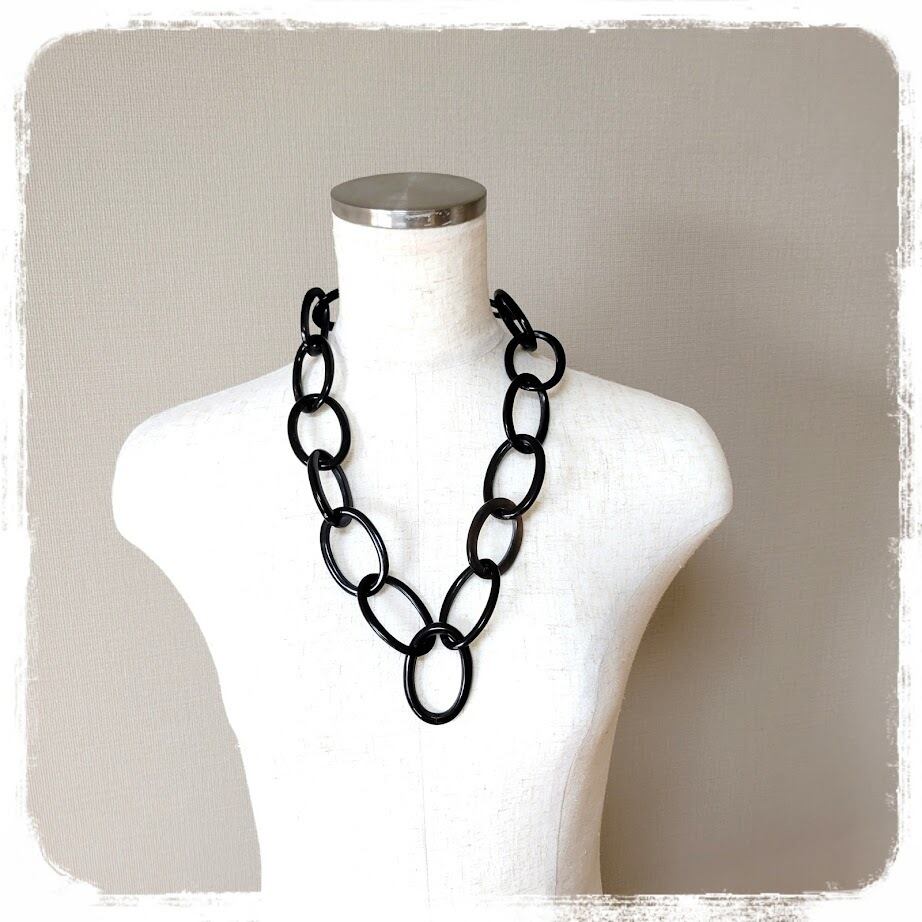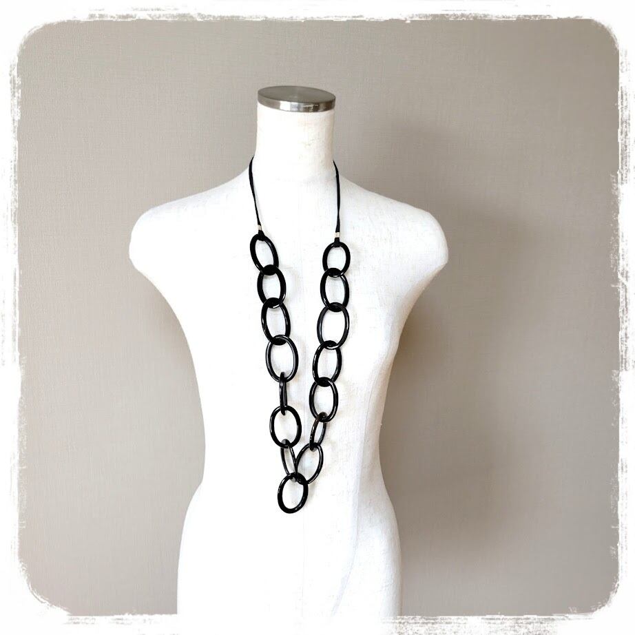 大きくて細目のシンプルな水牛リングをあえてシンプルにリングのみでネックレスにしました。