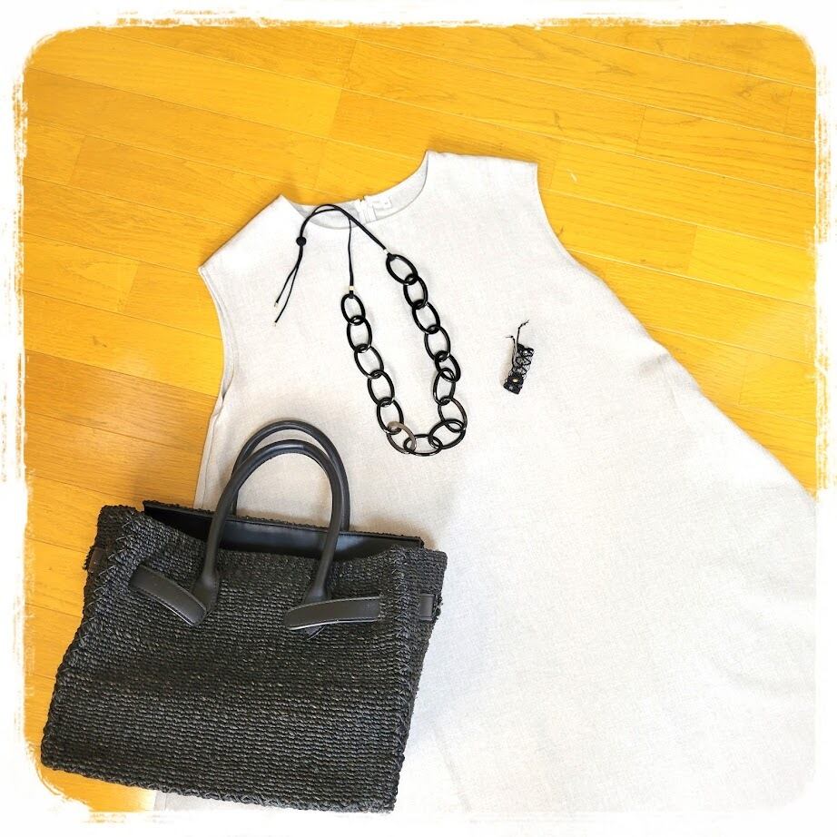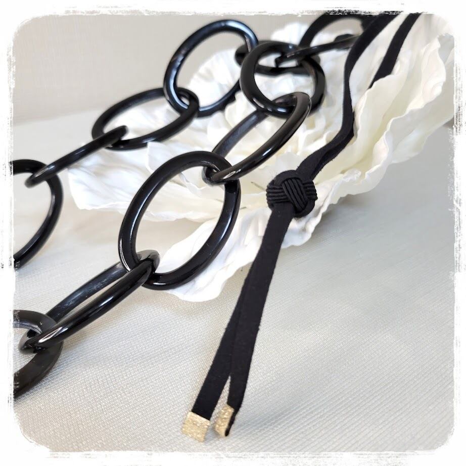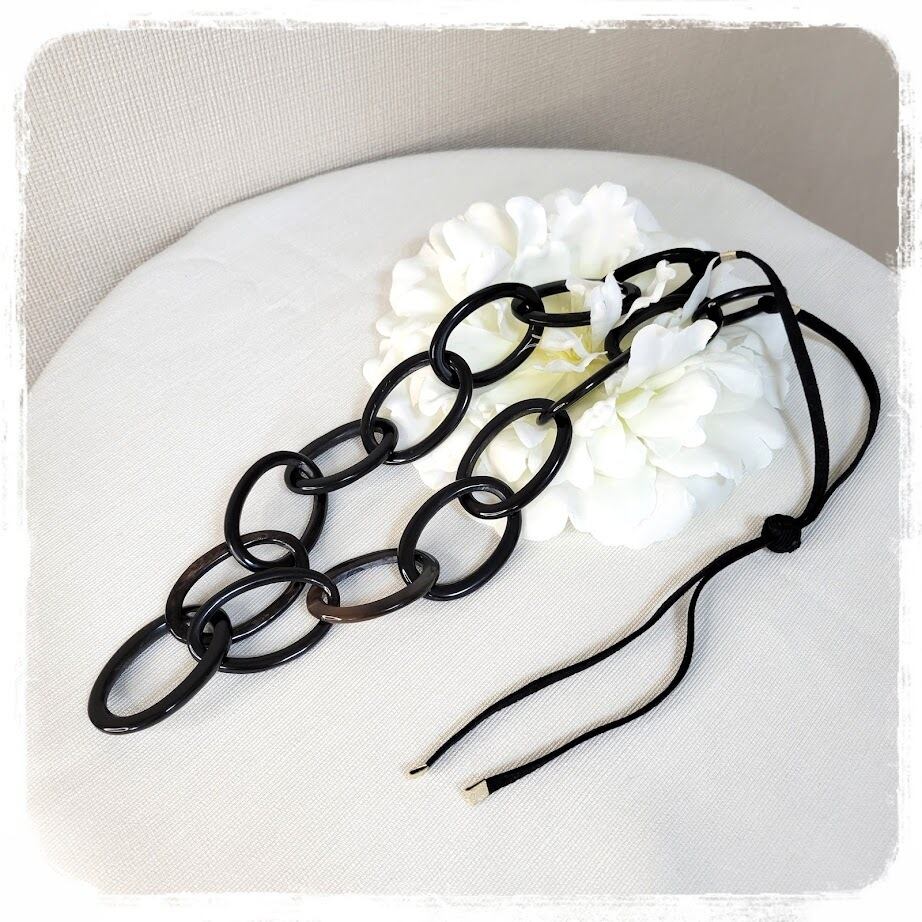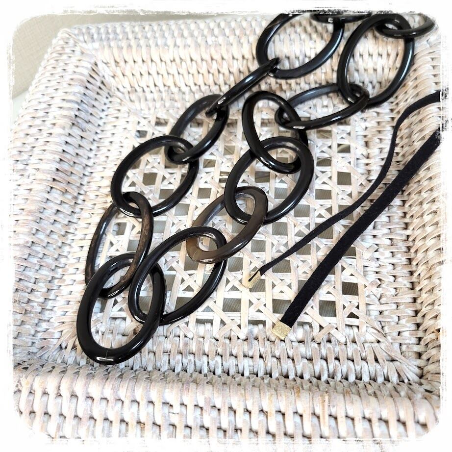 大きくて細目のシンプルな水牛リングをあえてシンプルにリングのみでネックレスにしました。