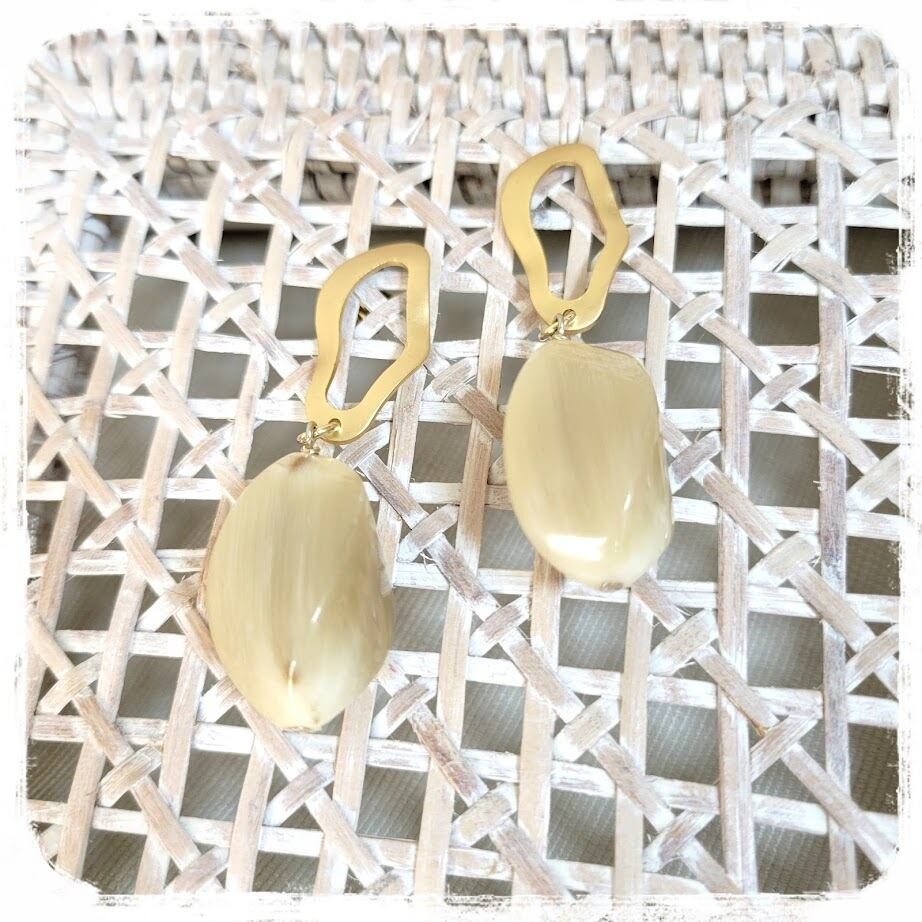 水牛とマットゴールドパーツ ピアス