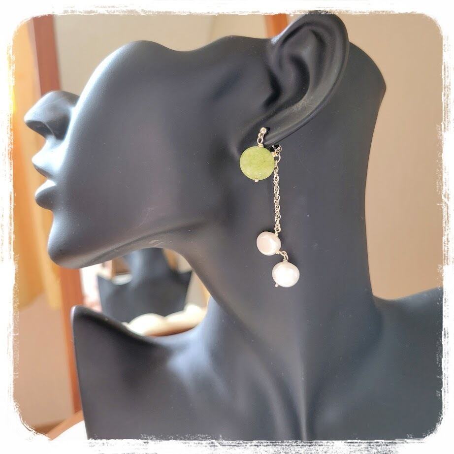 シンプルに水晶のみでも、パールが揺れるキャッチをつけてもと二通りに楽しめるピアスです。