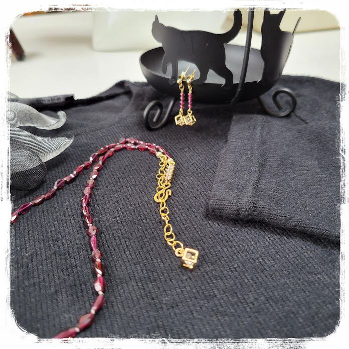 エンド部分のフック側ににキュービックジルコニアのパーツを配置していますのでこちらをラリエットの様にお使い頂けます。
