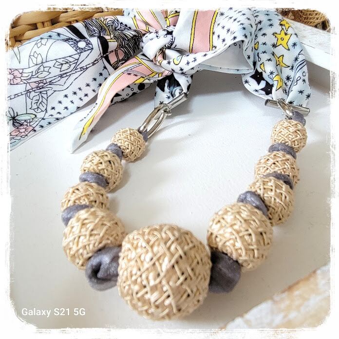 大きなパーツに糸を巻き付けてあるビーズです。