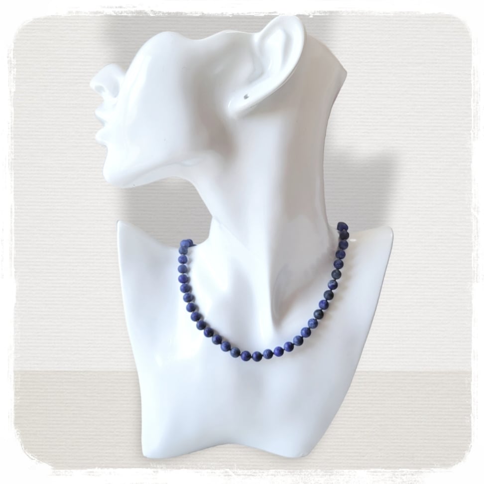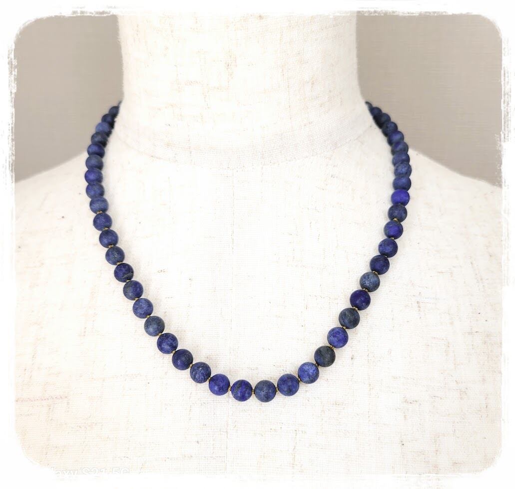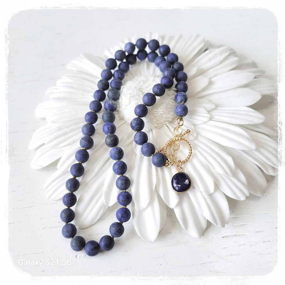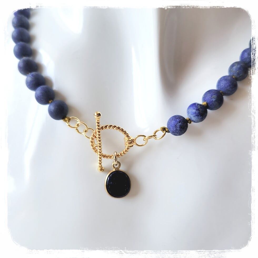 マット加工で控えめな輝きがラピスラズリの良さを一層引き立てるネックレスです。