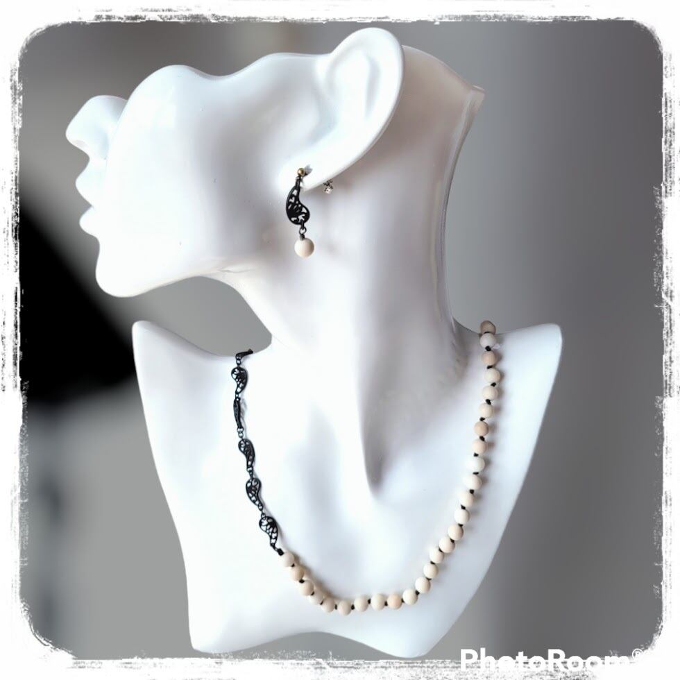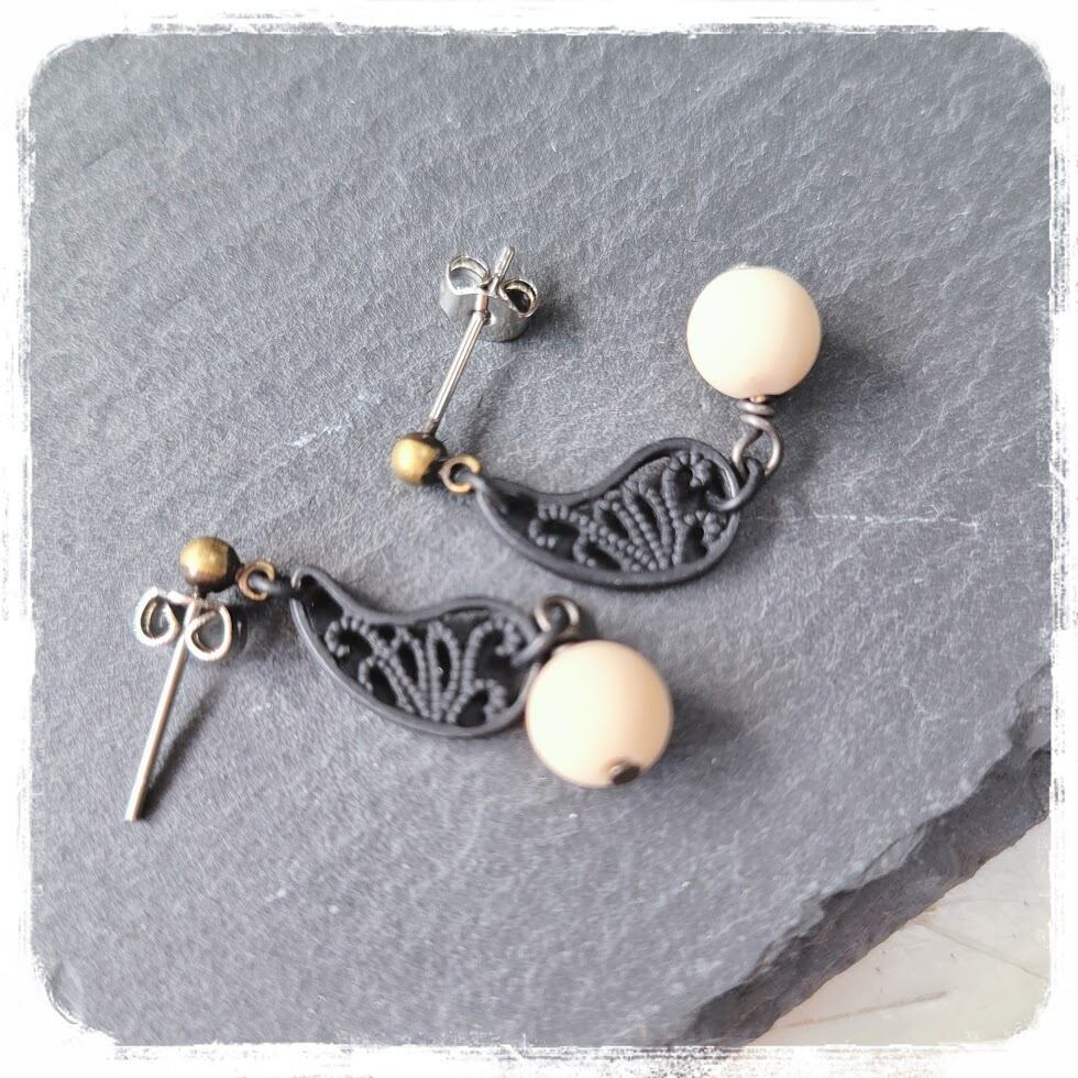 マットリバーストーンとブラックペイズリー ピアス
