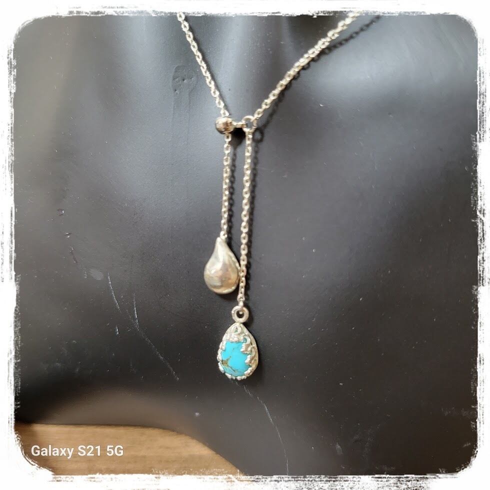 ストッパーでシルバーのドロップが長さを変えられるので変化を楽しめます。