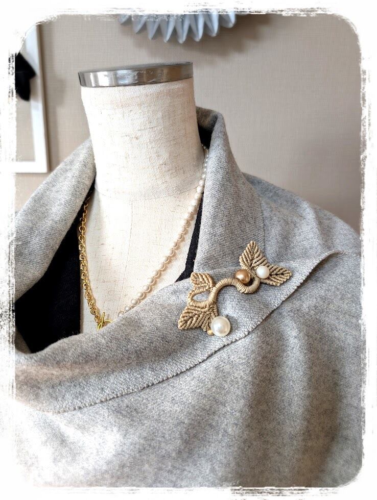 ストールやマフラーの留め具に、またタートルネックのセーターの襟元に着けるとポイントになりますね。